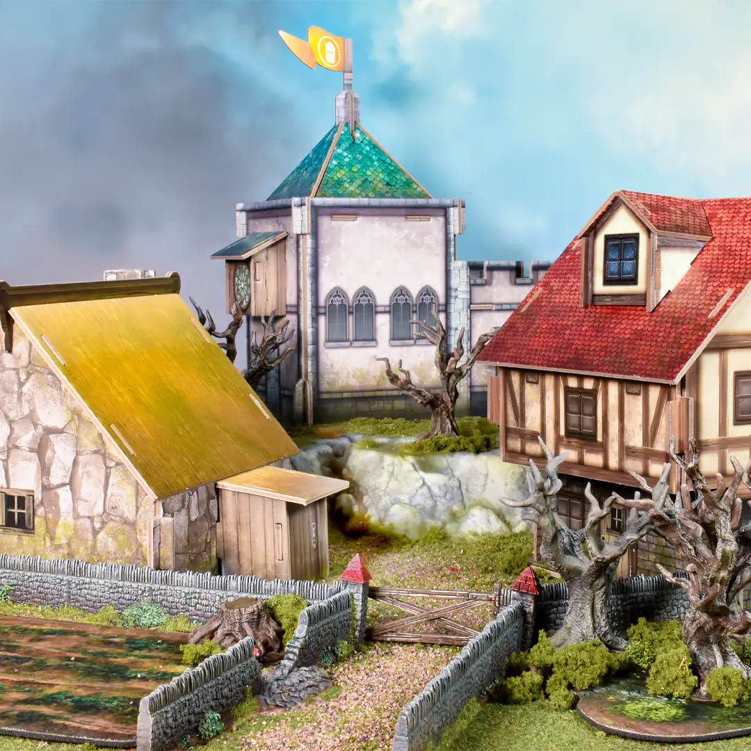 Level up your tabletop with the Fantasy Battlefield Pack for Kings of War! Just add the contents to your favourite neoprene gaming mat for a great looking battlefield in no time, and with no advanced hobby skills required.